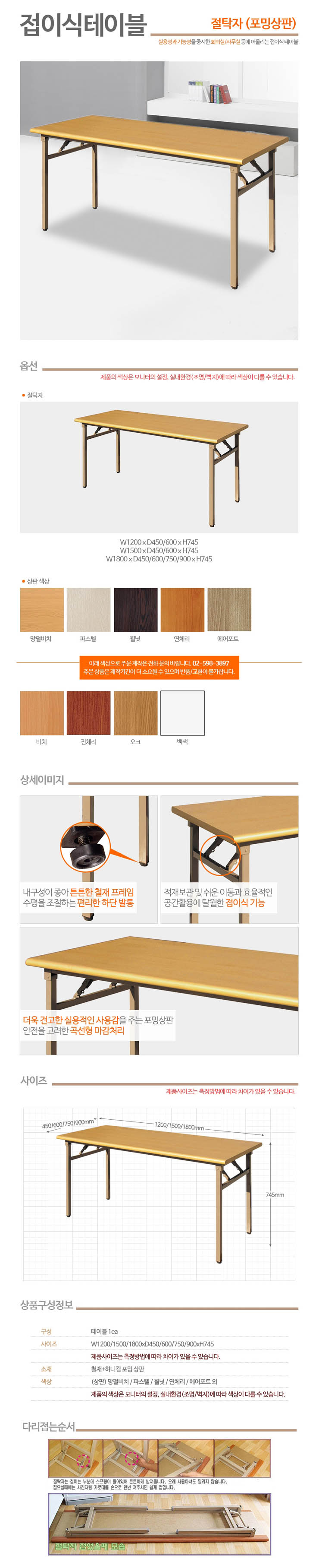 • W1200 x D600 x H720 x 접이식다리