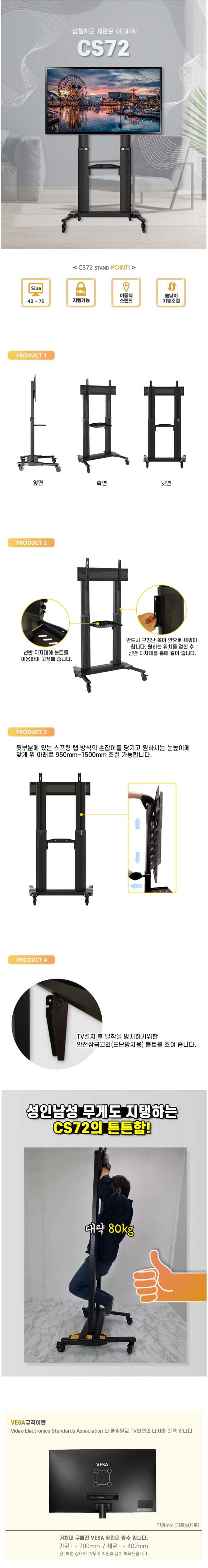 VESA 최대700x400 x 상하높이조절(950mm ~ 1500mm)