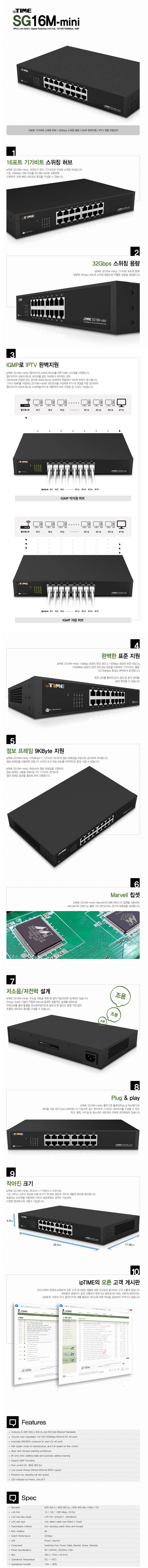 16포트 x 기가비트 이더넷용 x IPTV 셋탑 자동감지