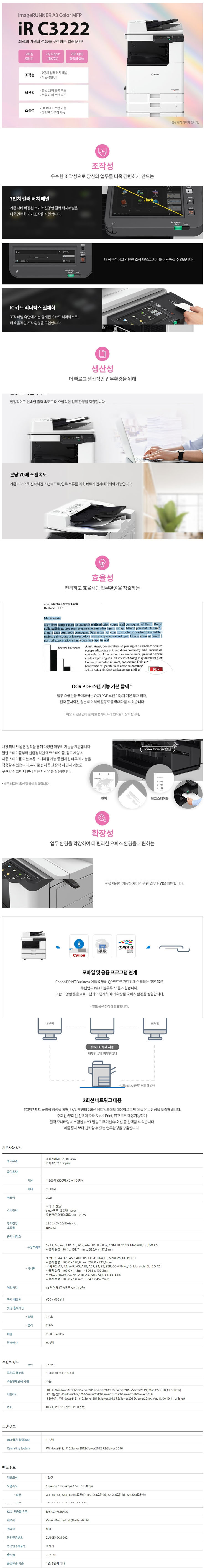 A3 x 컬러 x 인쇄22ppm x 스캔/복사/팩스